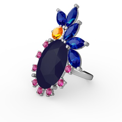 Lacivert akrilik 8 ayar beyaz altın yüzük