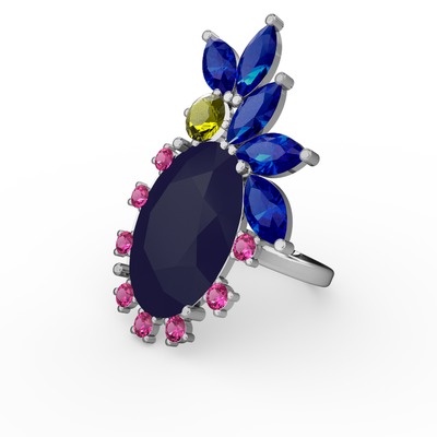 Lacivert akrilik 8 ayar beyaz altın yüzük