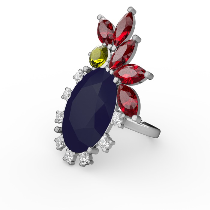 Lacivert akrilik 8 ayar beyaz altın yüzük