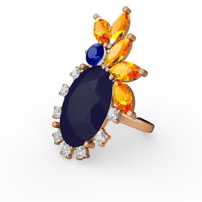 Lacivert akrilik 925 ayar altın kaplama gümüş yüzük (0.48 karat)