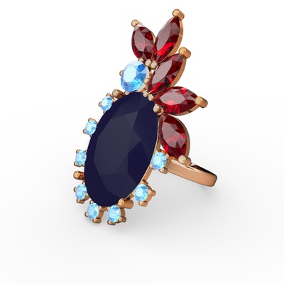 Lacivert akrilik, garnet ve akuamarin 925 ayar rose altın kaplama gümüş yüzük