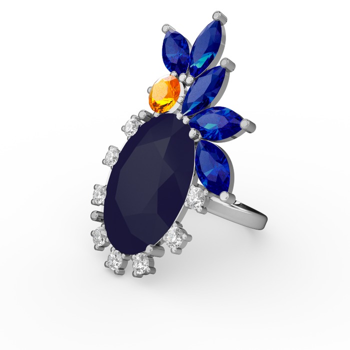 Lacivert akrilik 925 ayar gümüş yüzük (0.48 karat)