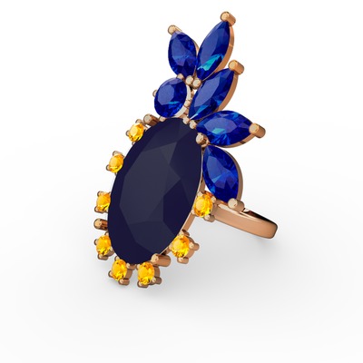 Lacivert akrilik, lab safir ve sitrin 8 ayar altın yüzük
