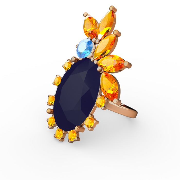 Lacivert akrilik, sitrin ve akuamarin 14 ayar rose altın yüzük