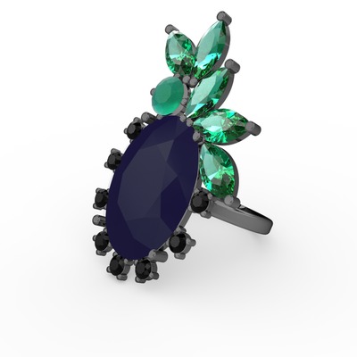 Lacivert akrilik 925 ayar siyah rodyum kaplama gümüş yüzük