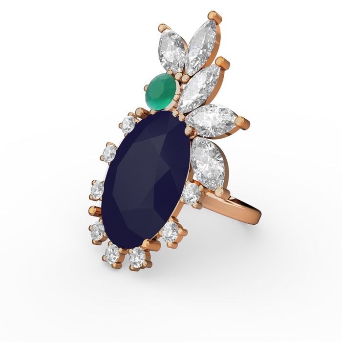 Lacivert akrilik, swarovski ve kök zümrüt 8 ayar altın yüzük