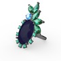 Lacivert akrilik, yeşil kuvars ve akuamarin 925 ayar siyah rodyum kaplama gümüş yüzük