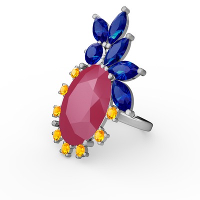 Neon pembe akrilik, lab safir ve sitrin 18 ayar beyaz altın yüzük