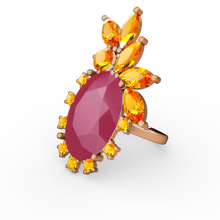 Neon pembe akrilik ve sitrin 14 ayar altın yüzük