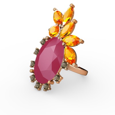 Neon pembe akrilik, sitrin ve dumanlı kuvars 925 ayar rose altın kaplama gümüş yüzük