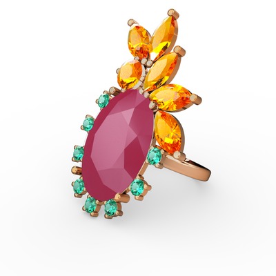 Neon pembe akrilik, sitrin ve yeşil kuvars 14 ayar altın yüzük