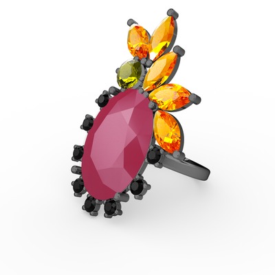 Neon pembe akrilik 925 ayar siyah rodyum kaplama gümüş yüzük
