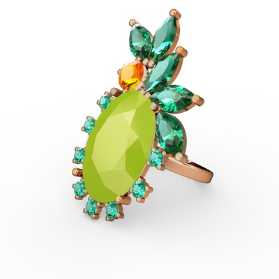 Neon sarı akrilik, yeşil kuvars ve sitrin 8 ayar altın yüzük