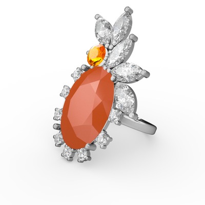 Neon turuncu akrilik 14 ayar beyaz altın yüzük (0.48 karat)