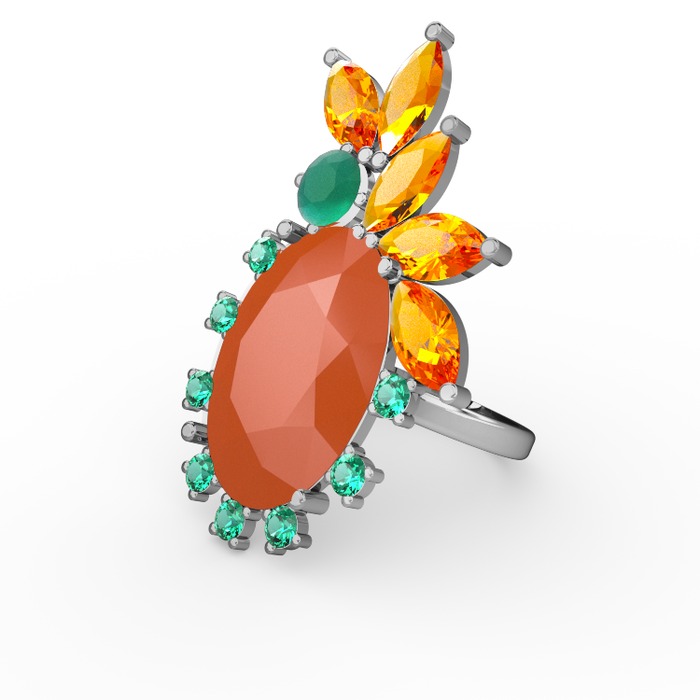 Arinna Yüzük - Neon turuncu akrilik 18 ayar beyaz altın yüzük