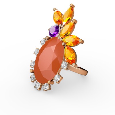 Neon turuncu akrilik 18 ayar rose altın yüzük