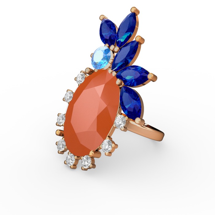 Neon turuncu akrilik 18 ayar rose altın yüzük