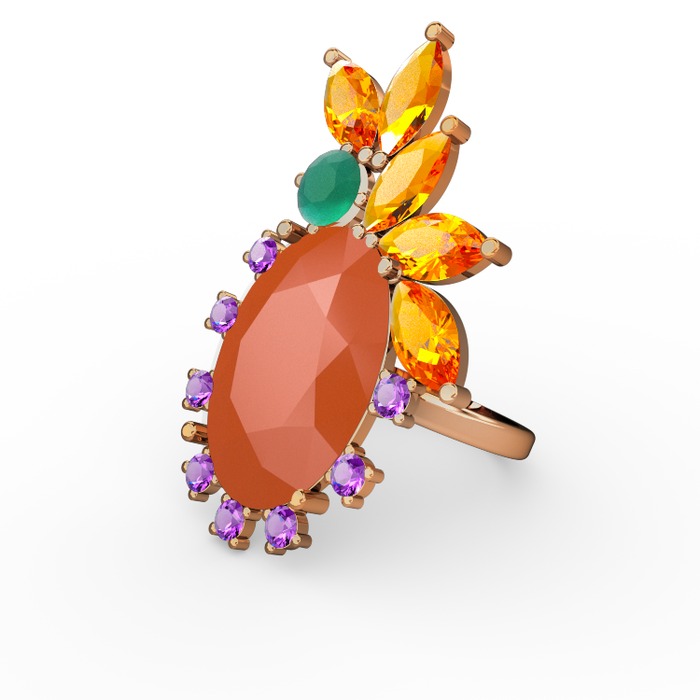Neon turuncu akrilik 18 ayar rose altın yüzük