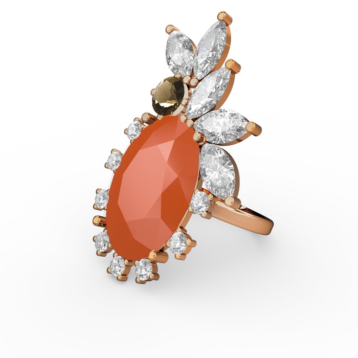 Neon turuncu akrilik 18 ayar rose altın yüzük
