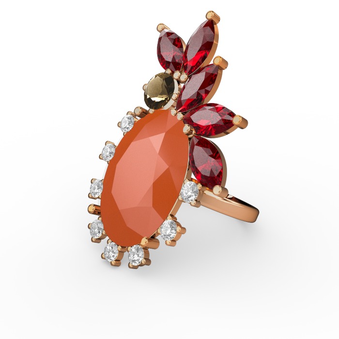 Neon turuncu akrilik 8 ayar altın yüzük (0.48 karat)