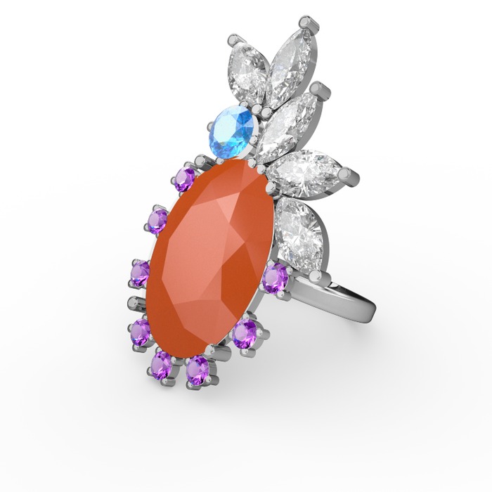 Neon turuncu akrilik 8 ayar beyaz altın yüzük