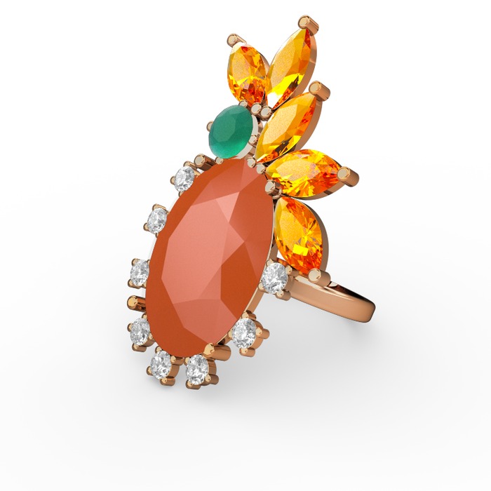 Neon turuncu akrilik 8 ayar rose altın yüzük (0.48 karat)