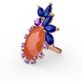 Neon turuncu akrilik, lab safir ve ametist 925 ayar rose altın kaplama gümüş yüzük