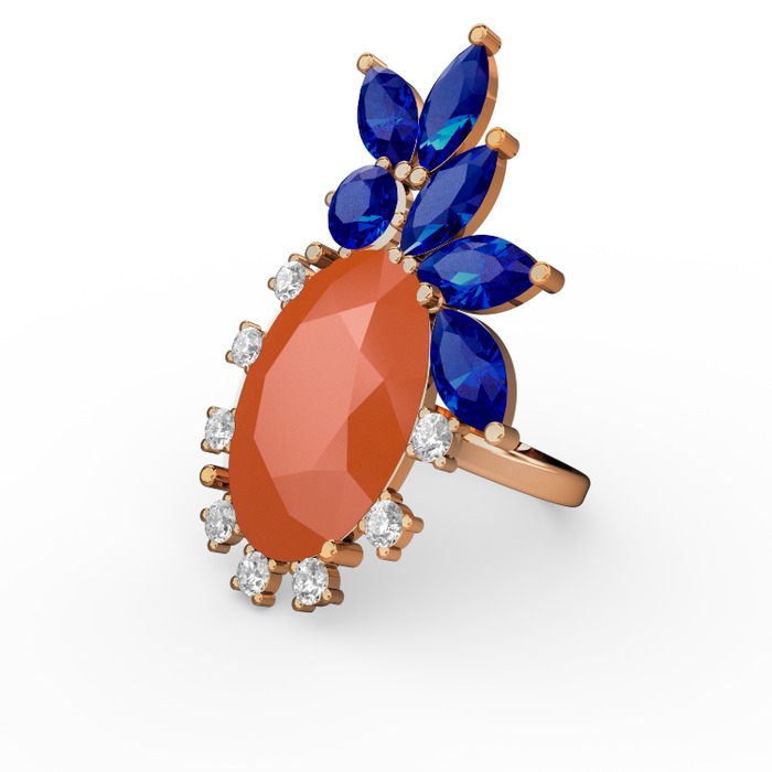 Neon turuncu akrilik, lab safir ve swarovski 18 ayar altın yüzük