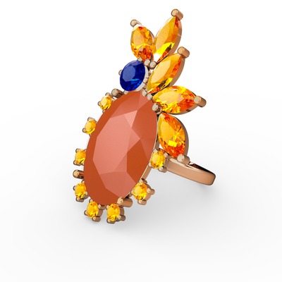 Neon turuncu akrilik, sitrin ve lab safir 18 ayar rose altın yüzük