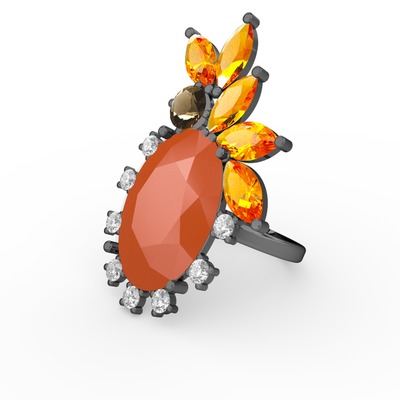Neon turuncu akrilik 925 ayar siyah rodyum kaplama gümüş yüzük (0.48 karat)