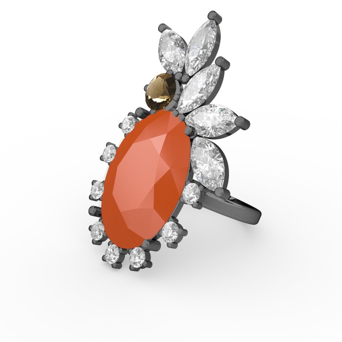 Neon turuncu akrilik 925 ayar siyah rodyum kaplama gümüş yüzük (0.48 karat)
