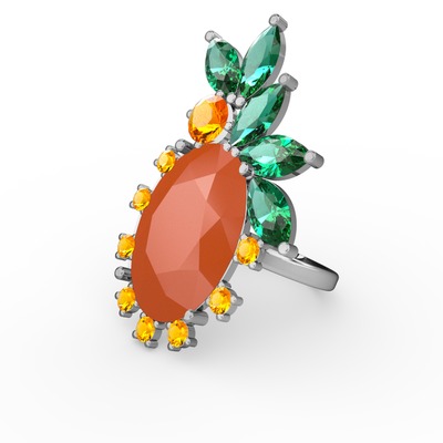 Neon turuncu akrilik, yeşil kuvars ve sitrin 925 ayar gümüş yüzük