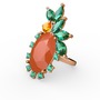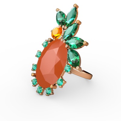 Neon turuncu akrilik, yeşil kuvars ve sitrin 925 ayar rose altın kaplama gümüş yüzük