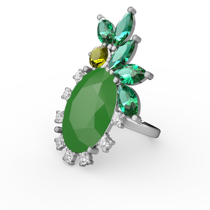 Neon yeşil akrilik 18 ayar beyaz altın yüzük (0.48 karat)