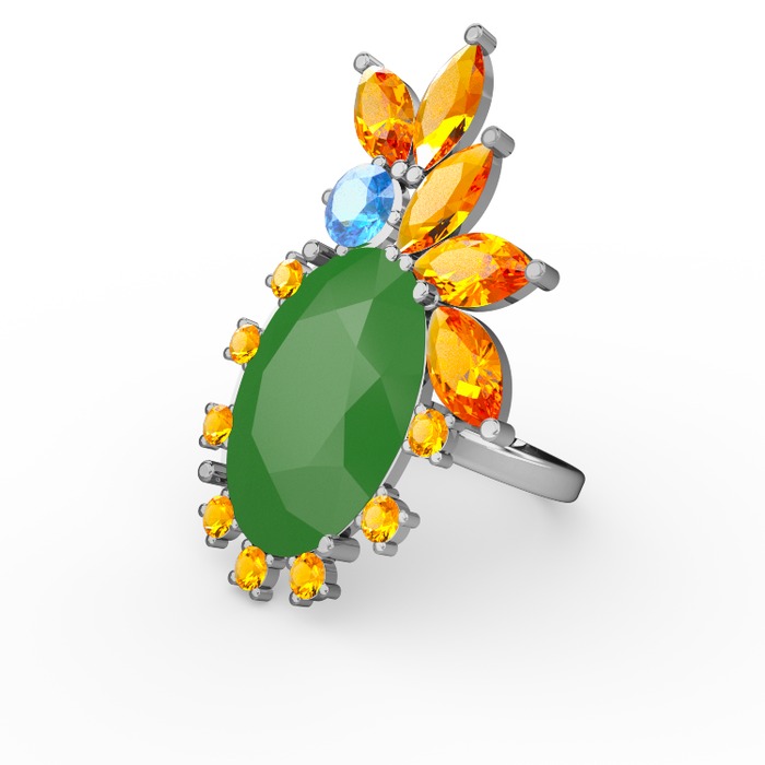 Neon yeşil akrilik, sitrin ve akuamarin 8 ayar beyaz altın yüzük