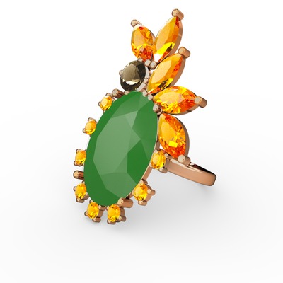 Neon yeşil akrilik, sitrin ve dumanlı kuvars 14 ayar altın yüzük