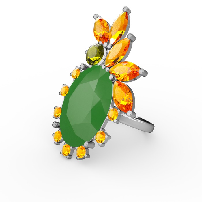 Neon yeşil akrilik, sitrin ve peridot 8 ayar beyaz altın yüzük
