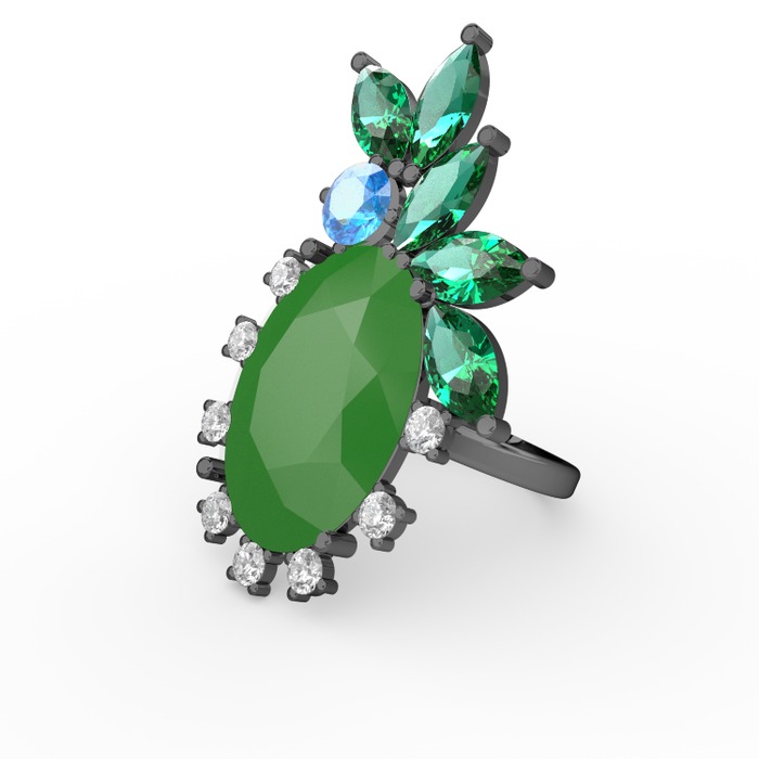 Neon yeşil akrilik 925 ayar siyah rodyum kaplama gümüş yüzük (0.48 karat)