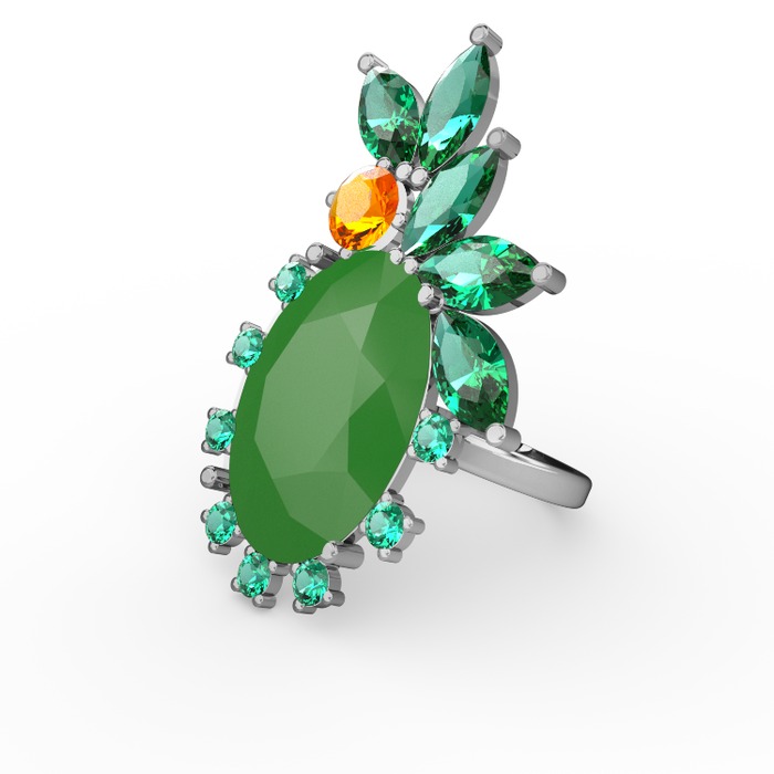 Neon yeşil akrilik, yeşil kuvars ve sitrin 18 ayar beyaz altın yüzük