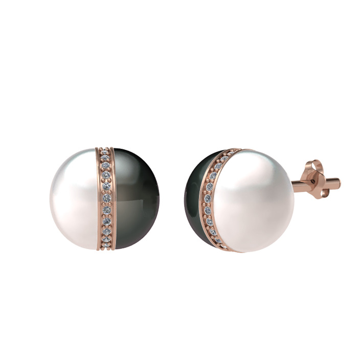 Inci, siyah inci ve beyaz zirkon 925 ayar rose altın kaplama gümüş küpe