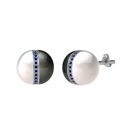 Inci, siyah inci ve lab safir 8 ayar beyaz altın küpe