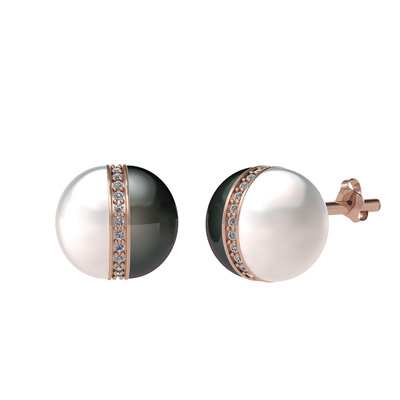 Inci, siyah inci ve pırlanta 18 ayar rose altın küpe (0.52 karat)