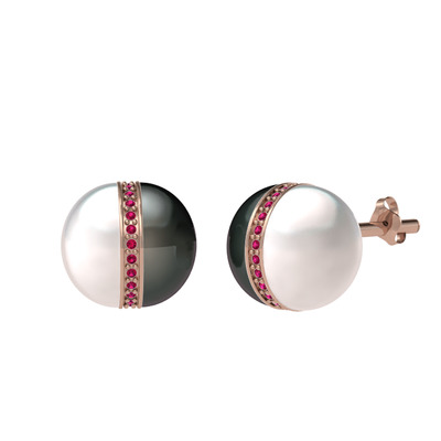 Inci, siyah inci ve rodolit garnet 18 ayar rose altın küpe