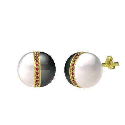 Inci, siyah inci ve rodolit garnet 925 ayar altın kaplama gümüş küpe