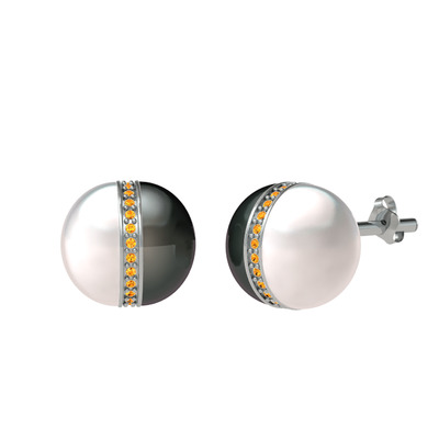 Inci, siyah inci ve sitrin 8 ayar beyaz altın küpe
