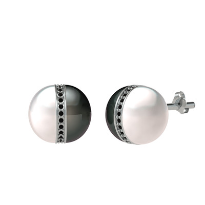 Inci, siyah inci ve siyah zirkon 18 ayar beyaz altın küpe