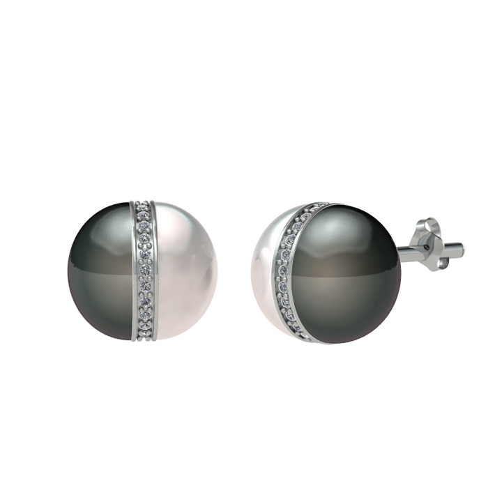 Siyah inci, inci ve beyaz zirkon 8 ayar beyaz altın küpe