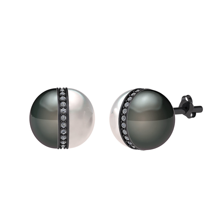 Siyah inci, inci ve beyaz zirkon 925 ayar siyah rodyum kaplama gümüş küpe