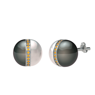 Siyah inci, inci ve sitrin 14 ayar beyaz altın küpe