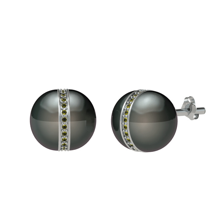Siyah inci ve peridot 8 ayar beyaz altın küpe